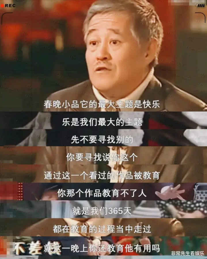 他曾说:小品最大的主题是快乐,它教育不了人。大家一年365天都在教育的过程走过,就这一晚上你还教育他有用吗?