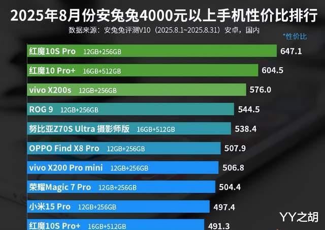 最后,在2025年8月份安兔兔4000元以上手机性价比排行榜中,vivo X200 Pro mini和荣耀Magic 7 Pro分列第七名和第八名。在安兔兔平台上,这两款智能手机的性价比评分分别为506.8分和504.4分。在此之后,小米15 Pro和红魔10S Pro+分列第九名和第十名。在安兔兔平台上,这两款智能手机的性价比评分分别为497.4分和491.3分。其中,相比上一代,小米15 Pro最明显的变化是金属中框采用了四曲包裹设计,有点像小米14 Ultra,但在背面呈现出“四边等宽”的观感,看起来更加协调简约。